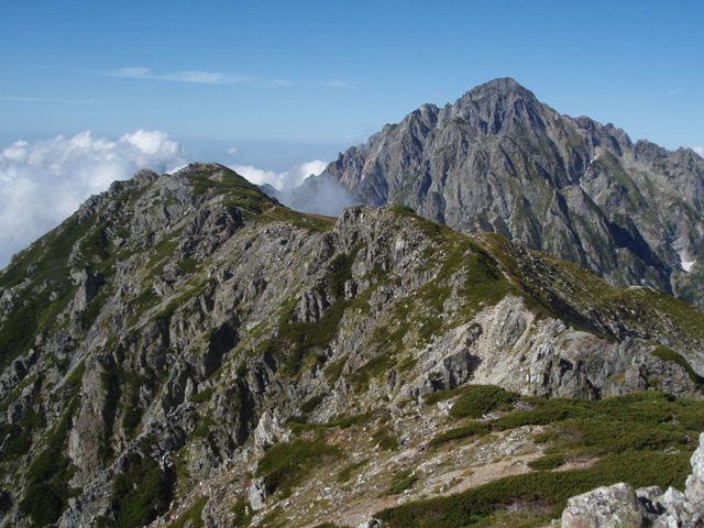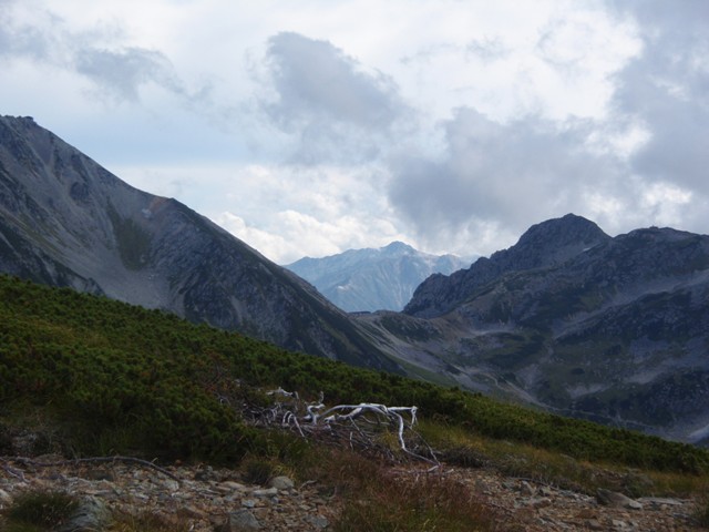 別山から剣御前小屋へ、、八ツ峰を見る、14:12