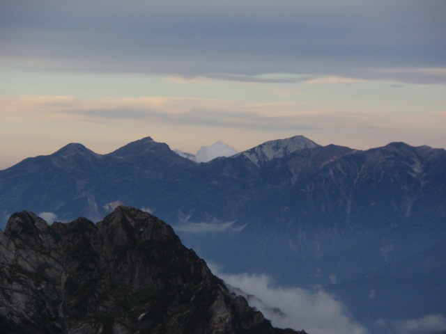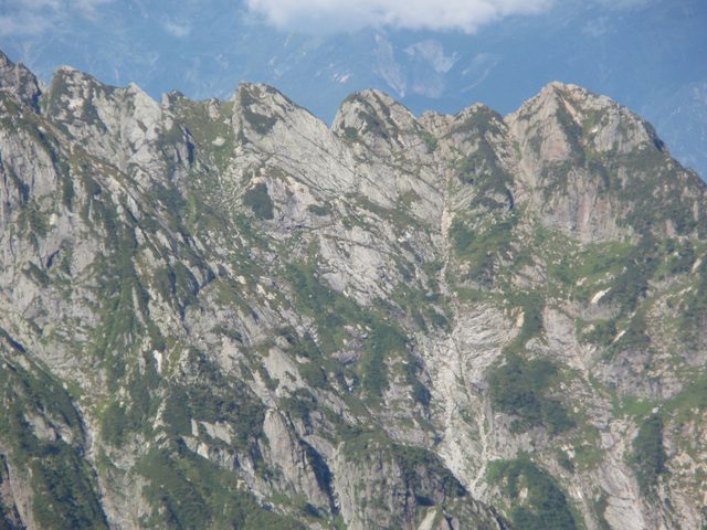 拡大図:左:池平山?、仙人山?奥:左:45白馬岳、白く見えるのが白馬金+遣ケ岳、その奥