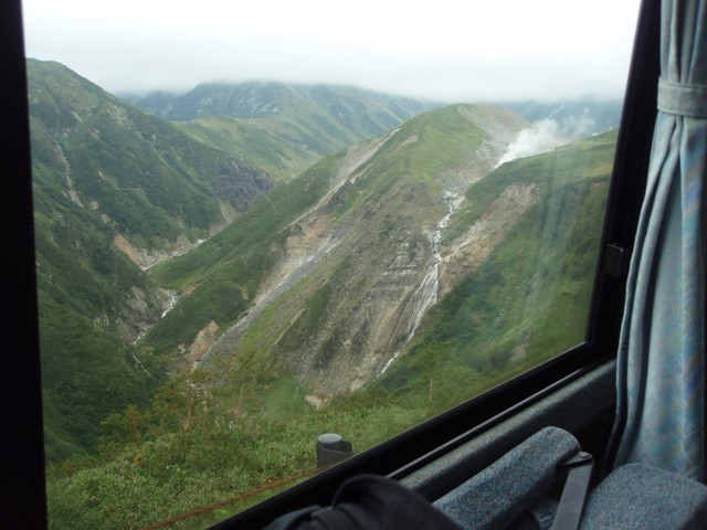 右:上地獄谷と素麺の滝、左:称名川 左奥:室堂乗越 9:33 (剱岳)