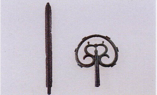 剱岳点の記に拠れば、明治40年に柴崎芳太郎の一行が登った時に山頂で錫杖の頭と剣の先が見つかっています。古い時代に山岳信仰の修験者が登頂していたことが分かります。それらは柴崎家に保管され現存していますが、時代はまだ確定していないようです。